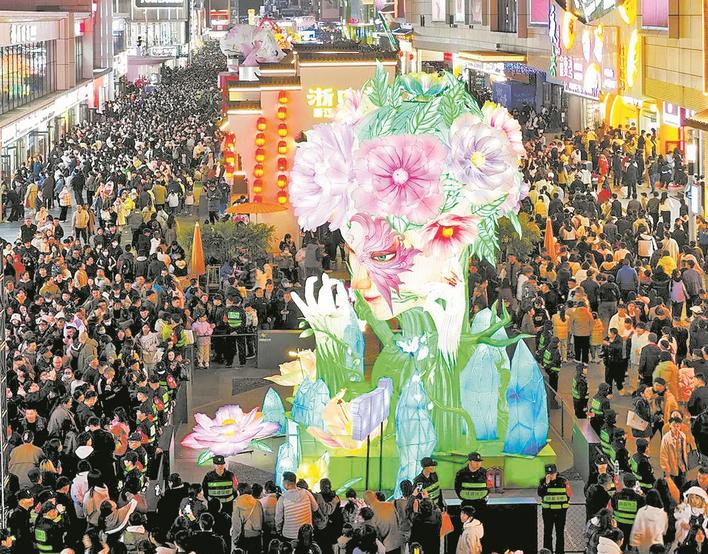 “你看这个悟空造型的彩灯真漂亮,还会眨眼睛。快拍张照片发个朋友圈。”一位年轻女孩兴奋地和同伴说。记者了解到,今年湾里庙步行街的灯会于11月16日开幕,当天街区客流量接近50万人次,省外游客高达4.3万人次,登上了头条热搜全国旅游榜第7名。