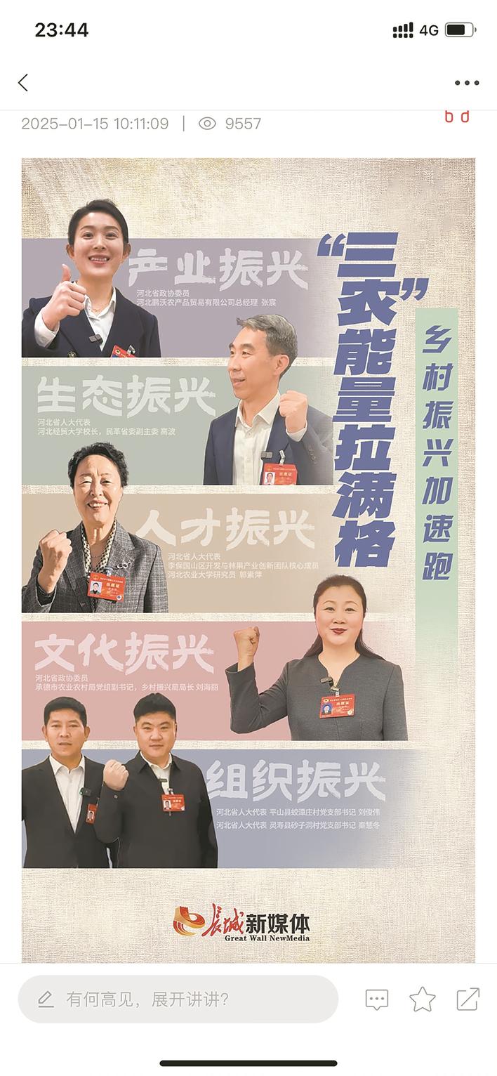 政府工作报告明确提出聚力乡村全面振兴,促进城乡融合发展。加快建设农业强省,深入实施新型城镇化战略。2025年,河北乡村振兴怎么干?多位致力于乡村振兴工作的代表委员,对此信心满满。