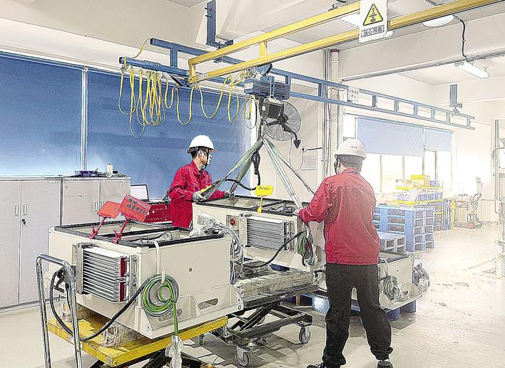 在国能信控互联技术(河北)有限公司的生产车间内,工人们正在对设备进行检查。 李寒梦 摄