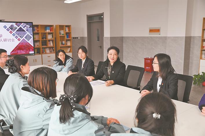 王淑英与教学团队开展家校社协同育人研讨。 长城网·冀云客户端记者 刘尚杰 摄