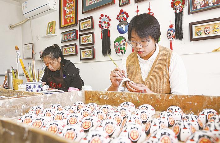 本报讯(通讯员任涵)在固安县马公庄村一家工作室里,各色颜料摆在工作台上,来自周边村街不同年龄段的妇女“齐聚一堂”,认真学习脸谱制作技艺。
