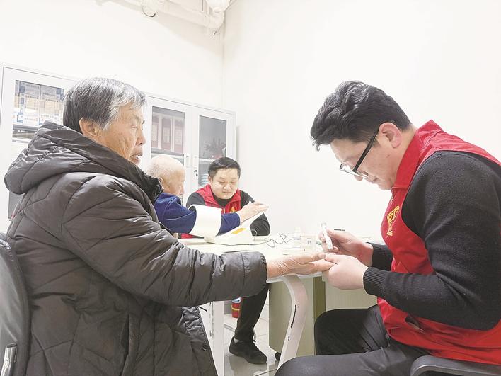 武邑县为让社区居民在“家门口”就能享受到便捷、有效的健康管理服务,在朝阳社区设立“健康小屋”,每周两天对社区群众免费开放,并向社区居民发放健康知识小册子,增强居民的健康自我防范意识。图为社区医务人员为居民检查身体。通讯员 许睿宁 李志强 摄