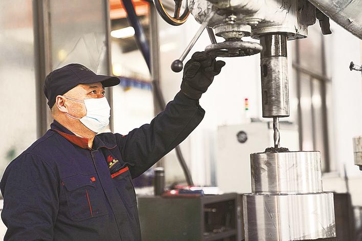 邢台经济开发区持续引进新能源装备制造龙头和配套企业,大力提升产业核心竞争力,打造新能源装备产业集群。图为邢台曙光轧辊有限公司工人加工轧辊。