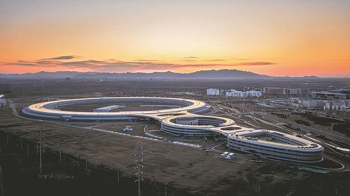 晨光下的高能同步辐射光源(2024年12月27日摄)。 国家重大科技基础设施——高能同步辐射光源(HEPS)3月27日正式启动带光联调,HEPS建设进入冲刺阶段。作为北京怀柔科学城重大科技基础设施集群的核心设施,HEPS由国家发展改革委批复立项,中国科学院高能物理研究所承担建设,建成后将是世界上设计亮度最高的第四代同步辐射光源之一,将为先进材料、航空航天、生物医药等领域前沿研究提供有力支撑。新华社发(袁广 摄)
