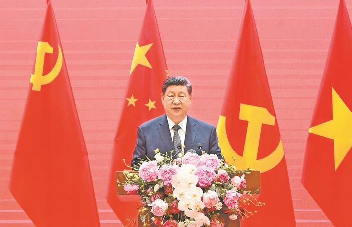 习近平强调,中越友好在两国人民守望相助中生根发芽,两国人民在争取国家独立和民族解放的正义事业中并肩战斗,给“同志加兄弟”的深厚情谊印染了鲜红底色。中越友好在两国人民团结协作中开花结果,双方锚定“六个更”总体目标,坚定支持彼此走符合本国国情的社会主义道路,不断取得社会主义建设事业新成就。中越友好在两国人民共同追求中传承升华,双方积极践行全球发展倡议、全球安全倡议、全球文明倡议,坚定捍卫国际公平正义,始终坚定站在历史正确一边、时代进步一边,为亚洲和世界提供了更多正能量。