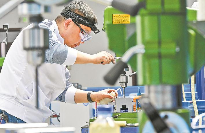 4月26日,选手在“装配钳工”项目比赛中。新华社发(郝群英摄)
