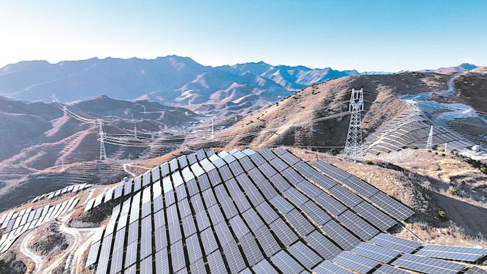 在青龙建昊土门子215MW光伏发电项目区,高低起伏的山坡上,一排排深蓝色的光伏板整齐排列,在阳光的照耀下熠熠生辉。太阳能通过这些光伏板转化为电能,沿着电网送往千家万户。