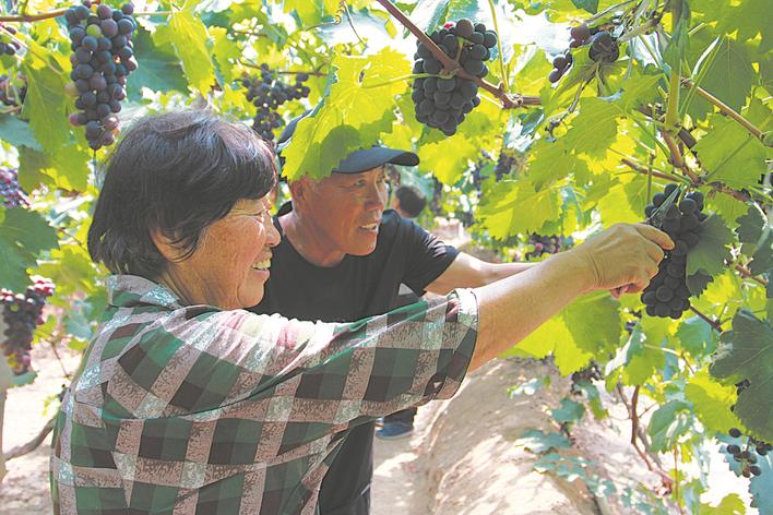 近年来,双滦区发展壮大特色种植产业,着力提升农业产业化水平,培育壮大特色果蔬种植,构建“政府+龙头企业+金融机构+合作社+基地+农户”的发展模式,推动乡村振兴,为农民增收开辟了新途径。图为双滦区一采摘园内,农户正在修剪葡萄藤的枝叶。陈建楠 摄