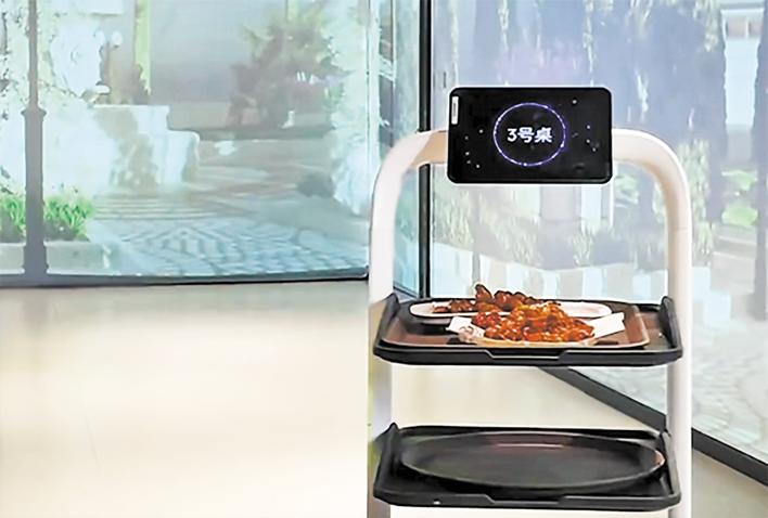 机器人餐厅经理霍丽丽说:“我们餐厅虽然小,但是有三种机器人,有迎宾机器人、炒菜机器人,还有送餐机器人。这三种机器人给餐厅大大降低了运营成本和人工成本,现在有100多家企事业单位都在用我们的智能炒菜机。”