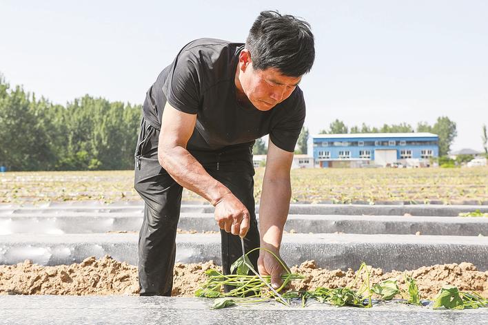 本报讯(通讯员郭志媛 陈龙)当下,正是蜜薯栽种的黄金时节,大厂回族自治县祁各庄镇毛庄村的农户们抢抓农时,栽种蜜薯幼苗,田间地头一派繁忙景象。
