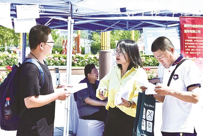 5月24日,广阳区举办”青春就业季·为梦想插上翅膀”主题招聘会。招聘会聚焦青年就业,采用“线下专区+线上直播”的创新模式,为高校毕业生和社会求职者提供就业机会。图为招聘会现场。高蕊 摄