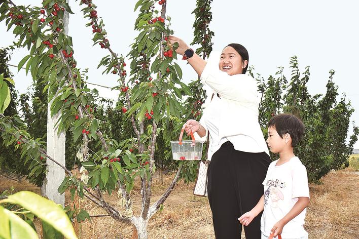 初夏时节,邢台经济开发区留村办事处六方村的樱桃迎来收获季,火红的樱桃挂满枝头,颗颗晶莹剔透,红绿相间,交相辉映,散发着诱人的果香,吸引众多游客前来采摘。