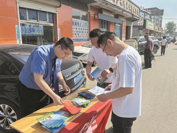 近日,文安县检察院联合县司法局在集市上支起普法“小摊”,开展了一场接地气、聚人气的民法典宣传活动。工作人员通过悬挂标语横幅,发放民法典宣传材料、“易申请”宣传册和宣传品等,鼓励群众学习法律知识,养成办事依法、遇事找法、解纷靠法的良好习惯。 薛营营 周楠楠 摄