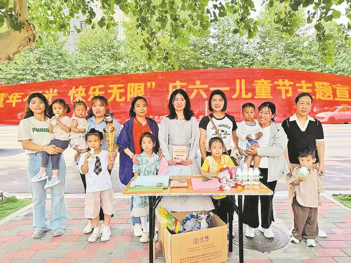 临近“六一”国际儿童节,石家庄市藁城区民政局精心组织了丰富多彩的关爱活动,为孩子们送上祝福与关爱。图为5月29日藁城区人民广场,工作人员向前来参与宣传活动的家长和孩子赠送节日小礼物并合影留念。通讯员 王佳琪 摄