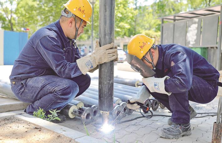 6月3日,秦皇岛市热力有限责任公司白塔岭供热分公司工人在一处小区进行施工作业。近日,该公司提前部署,开展分户改造,对供热设施“冬病夏治”,着力解决老旧小区热力管网锈蚀老化存在的安全隐患,确保冬季安全稳定供暖。曹建雄 摄