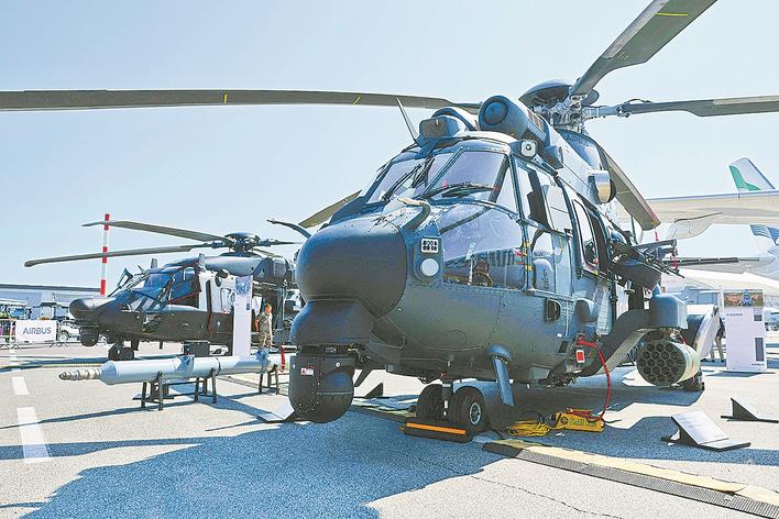 6月16日,在法国巴黎近郊布尔歇机场,空客H225M直升机亮相巴黎航展。 第55届巴黎航展6月16日正式开幕,将持续至22日。创始于1909年的巴黎航展是世界上规模最大和最负盛名的国际航空航天展会之一。新华社/法新