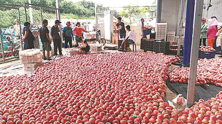 种植户分拣刚采摘的桃。 本报记者 贾宏博 摄