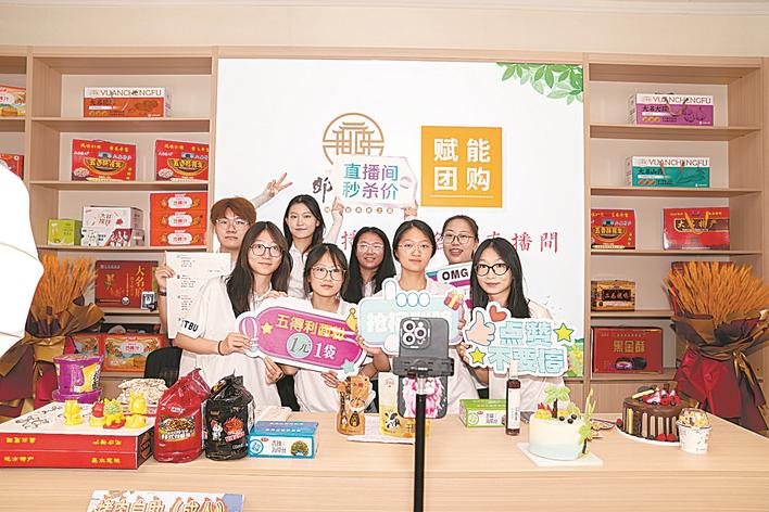 北京工商大学学生在大名“一品一播”产业园直播间参观学习。习守政 摄
