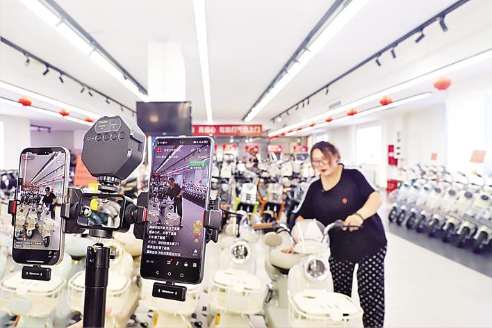 日前,张家口市桥西区商务局联合市电商联合会,在抖音和视频号两个平台打造“张家口市桥西区商务局”直播间,创新推出“线上直播+线下体验”融合的促消费专场活动,为市民呈现了一场别开生面的消费盛宴。图为工作人员在直播。 高阳 摄