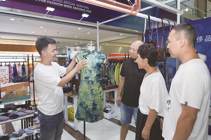 开幕式后,参会嘉宾到五大展区进行参观并现场试穿最新款服装。娄雅坤 摄
