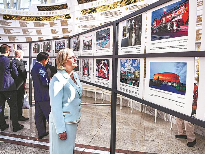 8月15日,白俄罗斯首都明斯克,在庄严的白俄罗斯国立伟大卫国战争历史博物馆胜利厅里,参观者神情肃穆地从一张张历史照片前缓步走过,他们驻足、凝视、深思。“铭记历史 开创未来”——纪念中国人民抗日战争暨世界反法西斯战争胜利80周年图片展15日在此开幕。新华社记者 张超群 摄