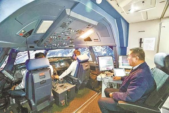 北京大兴国际机场临空经济区(廊坊)聚焦“国际交往中心功能承载区、国家航空科技创新引领区、京津冀协同发展示范区”总体定位,开创产城融合高质量发展临空模式,产业集聚效应逐步显现,世界一流航空城初具雏形。图为南航华北产教融合实训基地模拟机内部。贾珺 摄