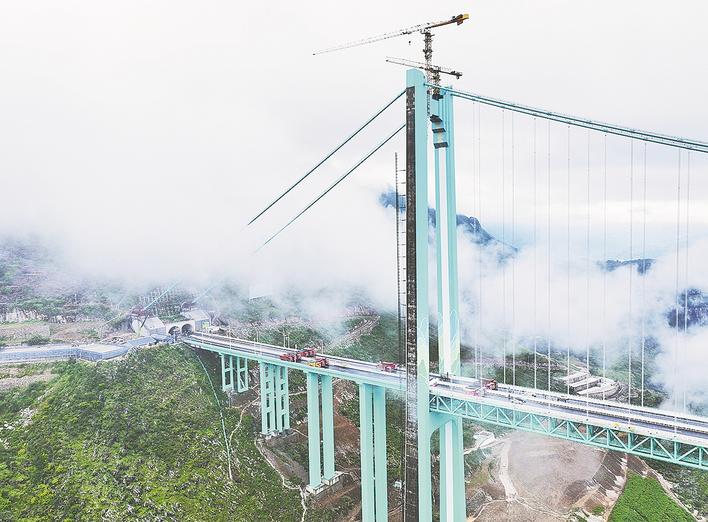 8月21日,在建世界第一高桥——贵州花江峡谷大桥正式启动荷载试验。2022年开工建设的花江峡谷大桥,跨越被誉为“地球裂缝”的花江大峡谷,是贵州省六枝至安龙高速公路的控制性工程。大桥为钢桁梁悬索桥,全长2890米,其中主桥跨径1420米,桥面至水面高度625米。