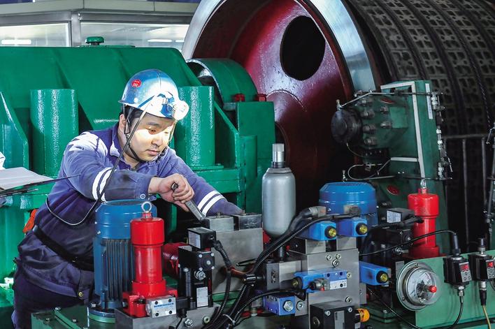 8月18日,冀中能源股份有限公司东庞矿动力科职工在认真检修副井提升系统。该矿各单位扎实做好机电设备维护保养工作,严明制度、包机到人、狠抓考核,严把检修质量关,为安全生产提供坚实机电保障。杨建富 摄