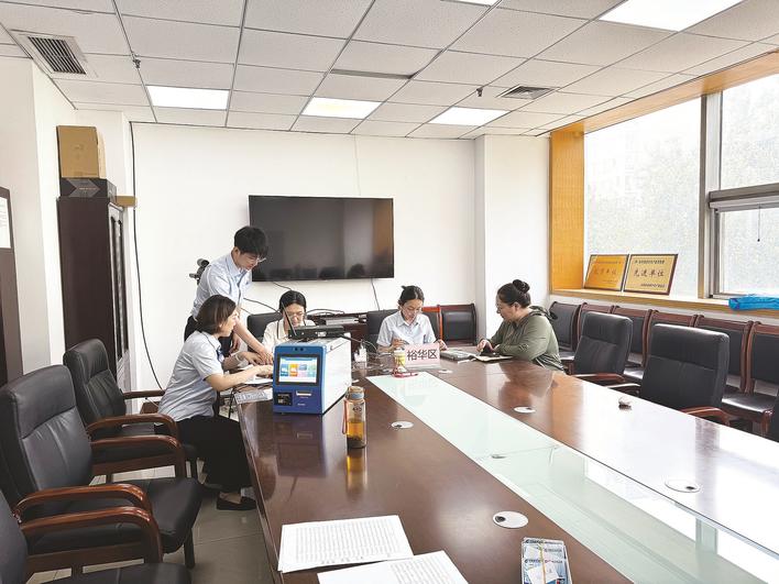 近日,建行石家庄建华南大街支行组织张富清党员突击队携带移动智能设备,走进裕华区政府上门服务,切实解决群众办理金融业务的“最后一公里”问题。李宪民 姚刚 摄