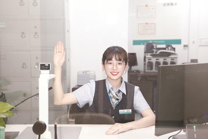 农行唐山分行高度重视服务工作,以优质高效服务回馈客户。图为农行唐山龙泽路裕华西道支行柜面经理何婉莹在认真展示举手招迎动作,以便客户能够第一时间识别。李俊霞 杨洋 摄