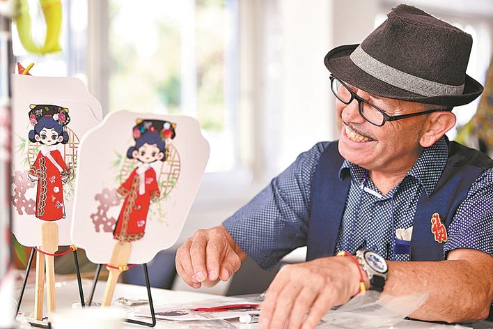 8月22日,在瑞士伯尔尼中国文化中心,嘉宾在“安善萃锦——中式生活美学展”开幕式上体验制作扇子。 “安善萃锦——中式生活美学展”22日晚在瑞士伯尔尼中国文化中心开幕。本次展览由该中心与恭王府博物馆联合主办,为来宾带来一场沉浸式的东方美学盛宴。新华社记者 连漪 摄