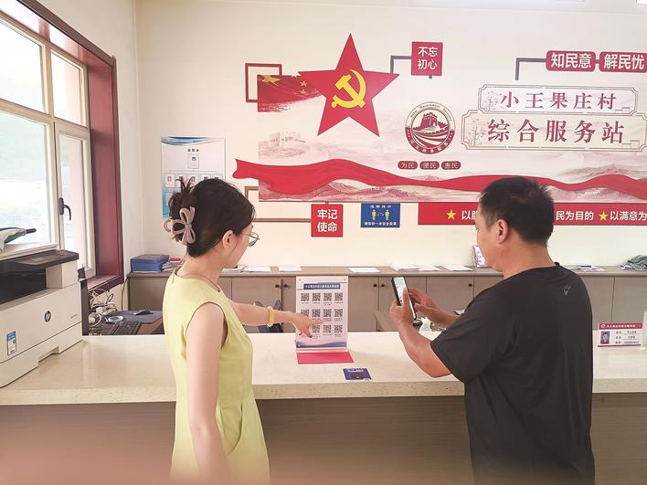 高阳县小王果庄镇为村级综合服务站定制行政审批局高频事项二维码,群众“扫一扫”即可了解办理流程。