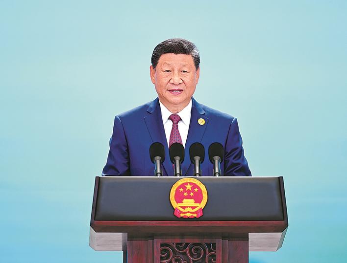 习近平发表致辞,代表中国政府和中国人民对来华出席上海合作组织峰会的国际贵宾表示热烈欢迎。