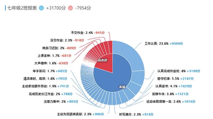 以下图一是笔者所带班级在七年级近半年通过“班级优化大师”记录的学生日常表现的点评记录图示: