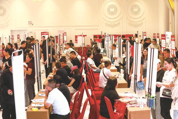 近日,永清县举行2025年“秋启新程 职等你来”金秋人才现场招聘会,为企业和求职人员搭建良好的就业对接平台,促进企业与求职者“双向奔赴”。此次招聘会共有75家永清域内外企业参加,提供1225个就业岗位,满足不同求职者的就业需求。图为招聘会现场。庞趁友 吴昊 摄