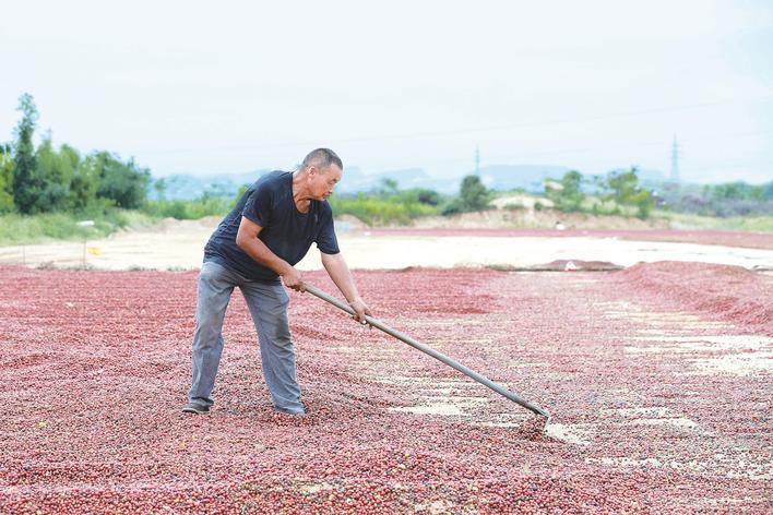 当前,内丘县标准化种植的10万亩酸枣迎来采摘期,连片的酸枣硕果累累,红绿相间挂满枝头,农民们加紧采摘、晾晒、加工。图为内丘县樊交台酸枣种植基地,村民在翻晒酸枣。 长城网·冀云客户端记者 齐彦红 通讯员 刘继东 田娇娇 摄