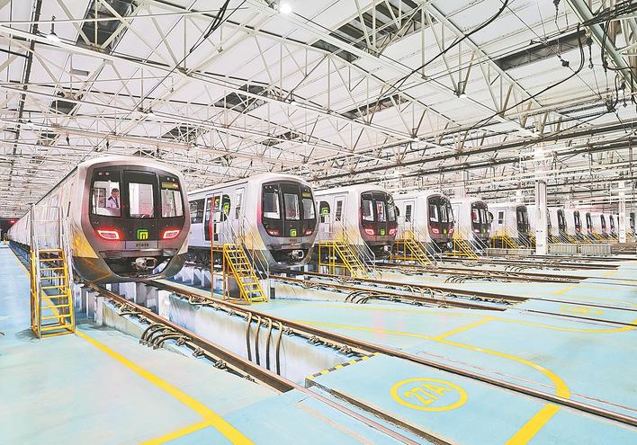 9月9日,地铁列车在石家庄市地铁西兆通车辆段整装待发。