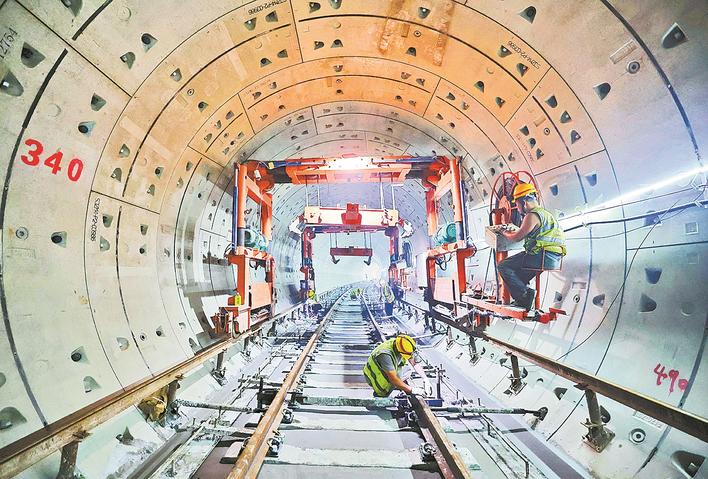 9月7日,工人在石家庄地铁4号线一期工程建设工地施工。
