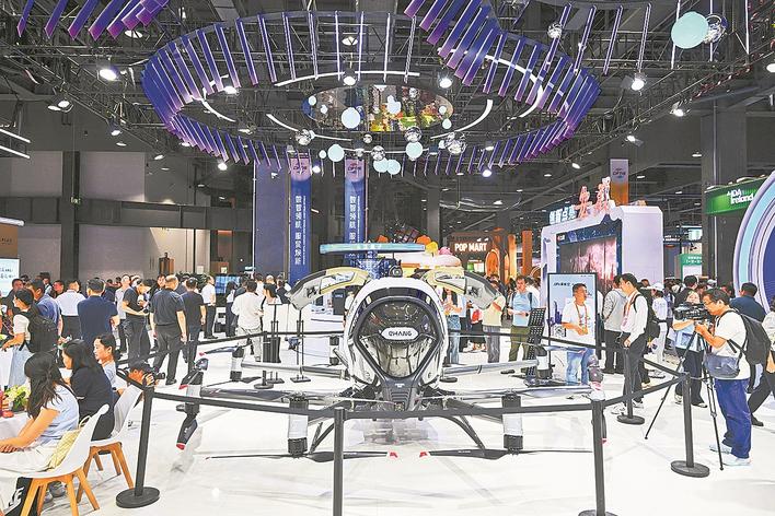 9月10日,参会人员在2025年服贸会主题展区参观安徽展位。 9月10日,以“数智领航,服贸焕新”为年度主题的2025年中国国际服务贸易交易会在北京开幕。新华社记者 陈晔华 摄