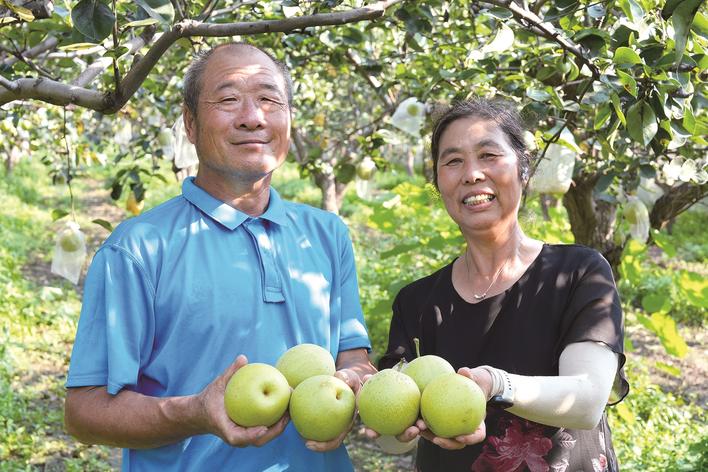 近日,马庄乡中东石干村的20余亩富硒梨迎来采摘期,饱满的梨子挂满枝头,种植户忙着采摘、分拣、装箱,一派繁忙的丰收景象。种植户曹领秀介绍,梨园一天能摘1000斤左右,一部分通过电商发往全国各地,其余的入库保鲜,今年亩产约1000斤,大果每斤卖6元,每亩收入6000多元。
