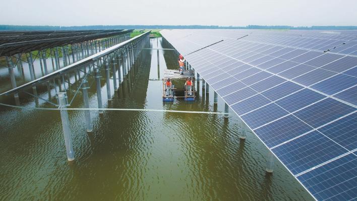 唐山供电公司党员服务队到玉田县石臼窝镇35千伏泰合韵瑶光伏电站巡视光伏板。周宇翔 摄