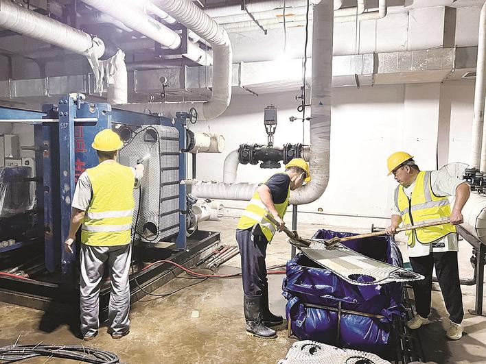 9月10日上午,在国仕山小区换热站,记者看到工作人员正在用高压水枪清洗板式换热片。现场负责人介绍:“因为水质较硬,冬季运行过后会发生结垢现象,导致换热率大幅降低,冲洗板式换热片污垢可提高水温交换率,使供热效果达到最佳状态。”上个采暖季,石家庄供热集团接管该小区的供热工作,为进一步提高设备完好率和换热效率,今年该集团聚焦“电气、水泵、板换、楼栋阀门”四大模块,进行了设备更新。