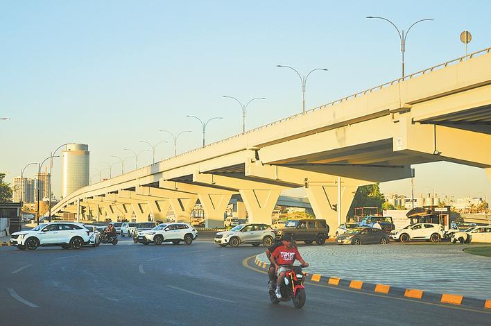 9月15日,车辆通过位于伊拉克首都巴格达的尼苏尔立体交通枢纽。 9月15日,由中国川铁国际经济技术合作有限公司承建的伊拉克巴格达尼苏尔立体交通枢纽项目全面竣工通车。项目以“2高架+5隧道”为主体,涵盖桥梁、地面公路(铁路)、隧道和下穿隧道4层结构。新华社记者 段敏夫 摄