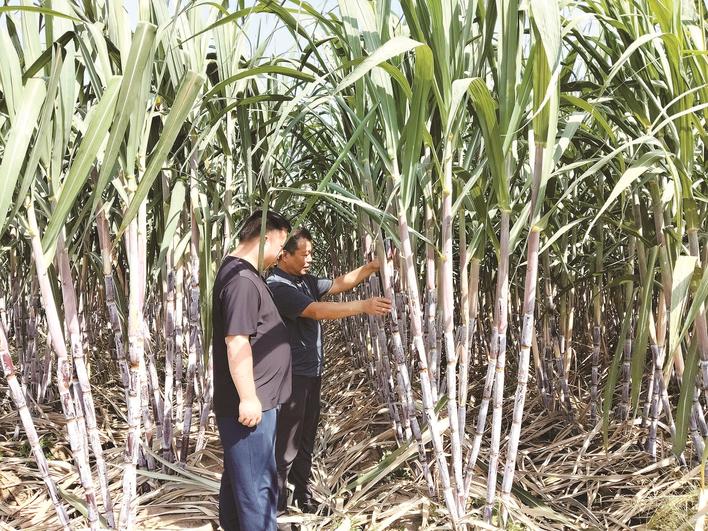 日前,在邢台经济开发区南阳三村甘蔗种植基地,留村办事处的农业技术人员正在查看甘蔗长势。甘蔗属于热带作物,传统上多种植于南方。如今,通过技术引进和创新,邢台经济开发区实现了“南蔗北种”,为农业结构调整探索了新路径。长城网·冀云客户端记者 刘杨 通讯员 李院红 摄