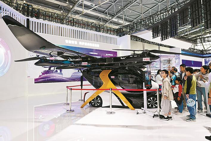 9月20日,观众在2025世界制造业大会上观看一款飞行汽车。 新华社发