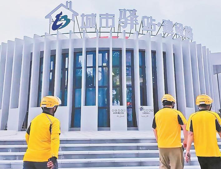 你看,这座城市驿站里,几位外卖小哥正在休息呢。