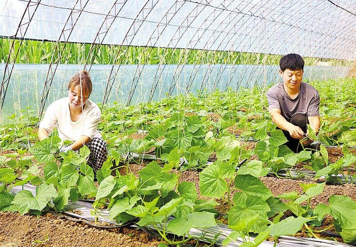平泉市认真实施乡村振兴战略,通过产业结构调整,加大科技培训力度,大力发展食用菌、设施菜、林果种植产业,促进农民致富增收。图为黄土梁子镇农业示范园区的农民在温室棚内管理蔬菜秧苗。李平文 摄