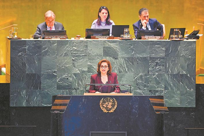9月22日,在位于纽约的联合国总部,联合国副秘书长、联合国妇女署执行主任巴胡斯在纪念北京世妇会30周年高级别会议上讲话。 9月22日,联合国大会纪念北京世妇会30周年高级别会议在纽约联合国总部举行,主题为“加快落实《北京宣言》和《行动纲领》,实现性别平等和妇女赋能”。与会代表表示,要加大努力,加强合作,积极应对挑战,持续推动落实《北京宣言》和《行动纲领》,推动落实联合国2030年可持续发展议程。新华社记者 李睿 摄