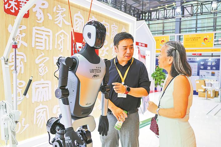 观众在2025深圳国际智慧养老产业博览会现场了解智能机器人。 新华社发