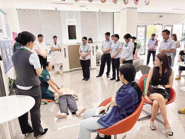 近日,农行京唐港支行诚邀唐山海港经济开发区医院急诊工作人员向员工、客户宣讲急救知识,提升员工遇到突发事件时冷静判断和快速反应能力。王阳 摄